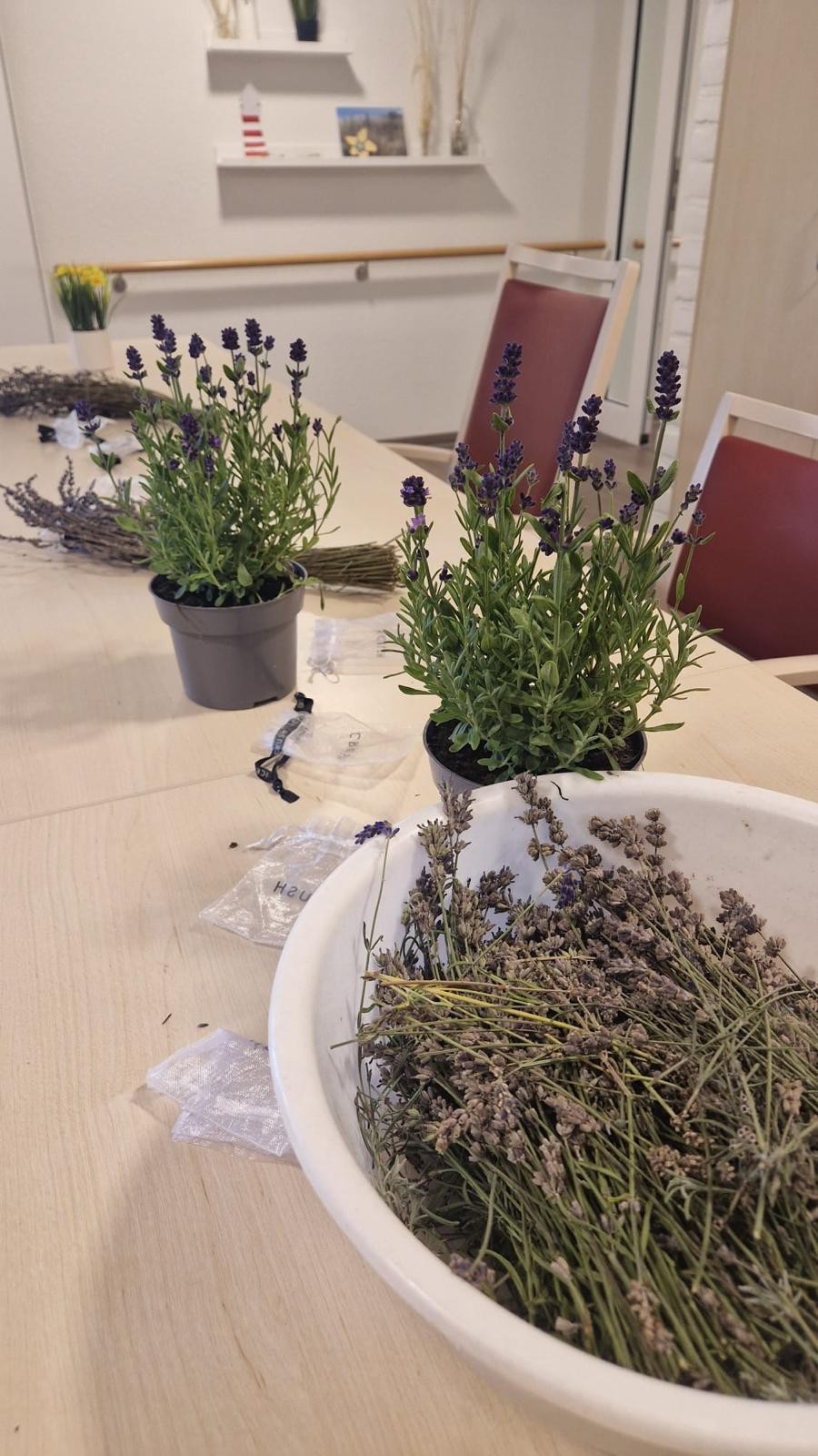 Wir basteln duftende Lavendelsäckchen.