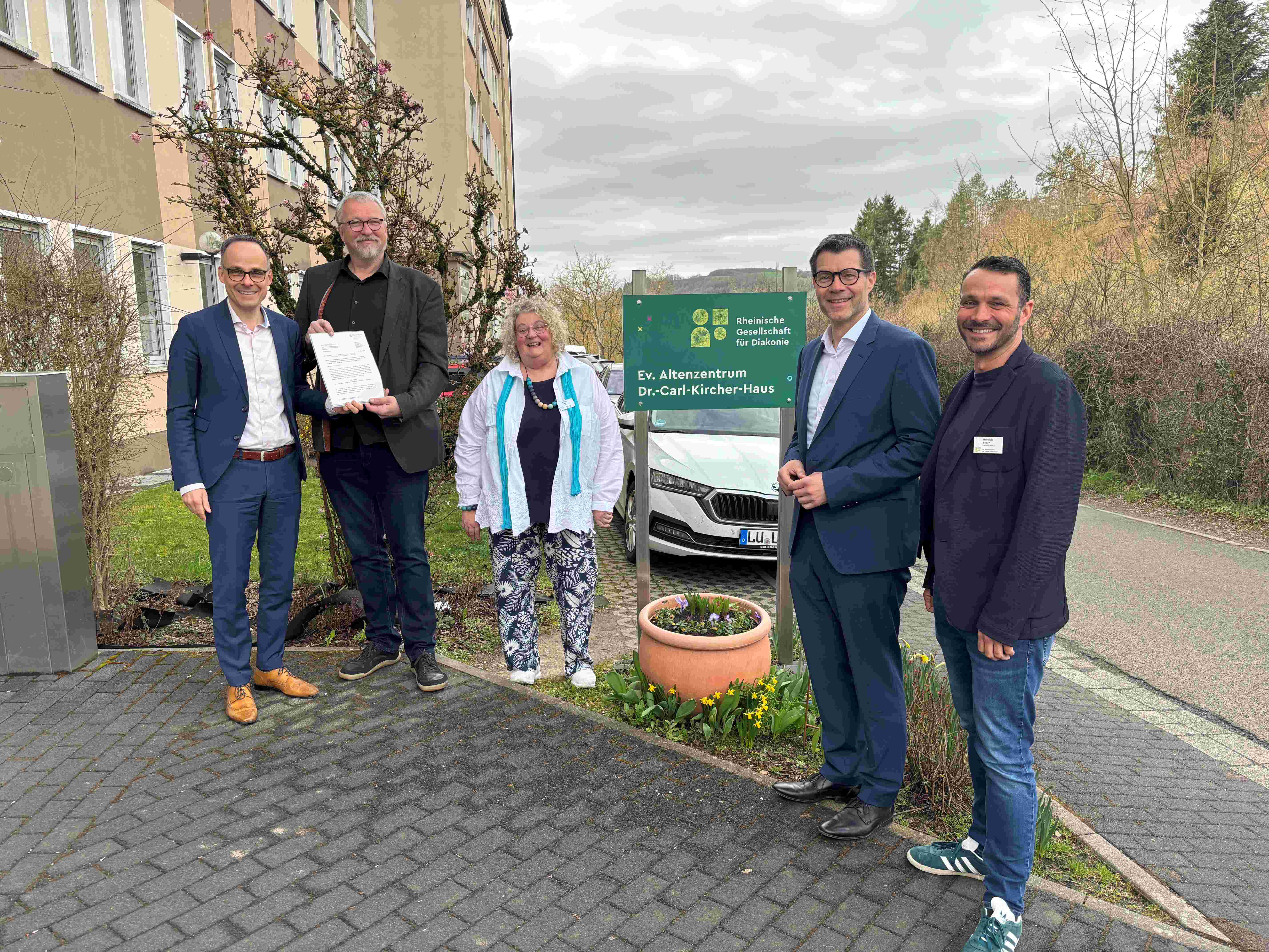Am Freitag, 13. März 2026, überreichte Staatssekretär Denis Alt der Rheinischen Gesellschaft für Diakonie gGmbH den Zuwendungsbescheid zur Projektförderung für die Projektentwicklung eines sozialraumorientierten Versorgungs- und Quartierskonzeptes im Zusammenhang mit dem Neubau des Ev. Altenzentrums „Dr.-Carl-Kircher-Haus“ in Meisenheim. Herr Martin Schué, Geschäftsbereichsleitung für den Bereich Altenhilfe, nahm den Bescheid entgegen.